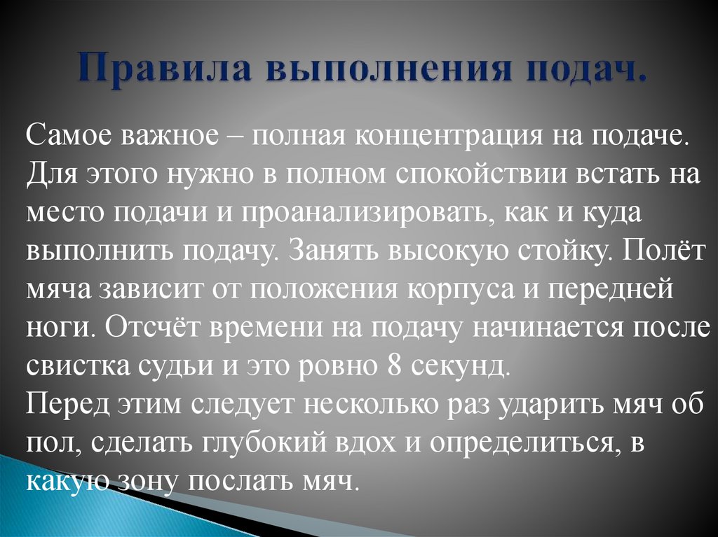 Самое важное – полная концентрация на подаче.Для этого нужно в полном спокойствии встать на