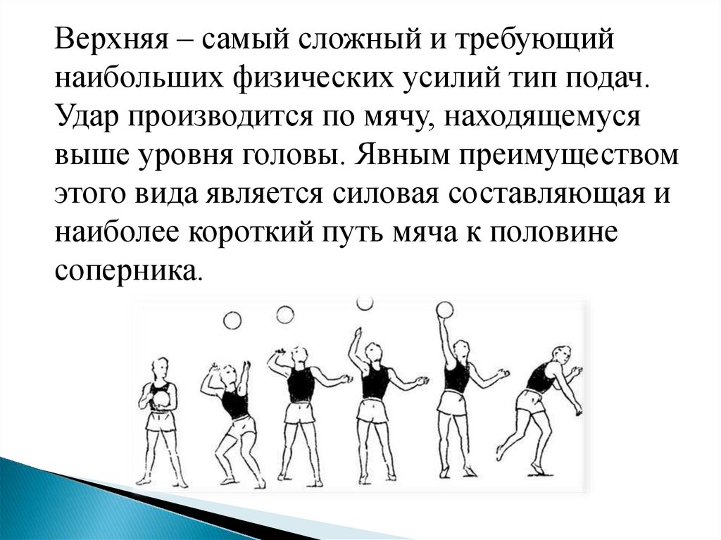 Верхняя – самый сложный и требующийнаибольших физических усилий тип подач.
