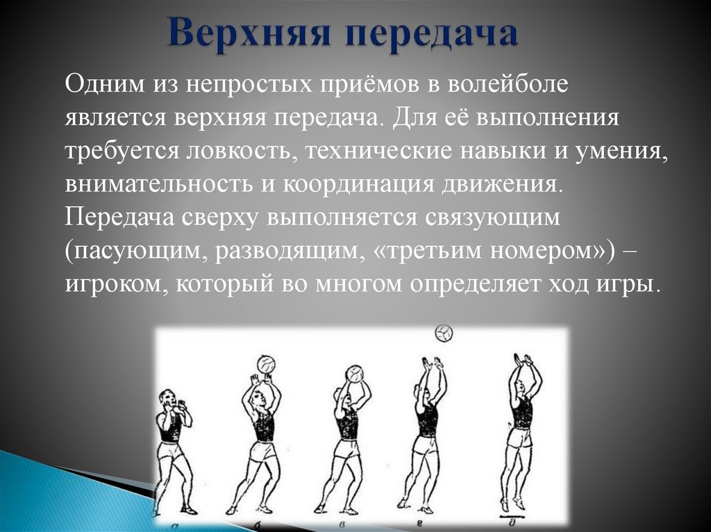 Одним из непростых приёмов в волейболеявляется верхняя передача. Для её выполнения