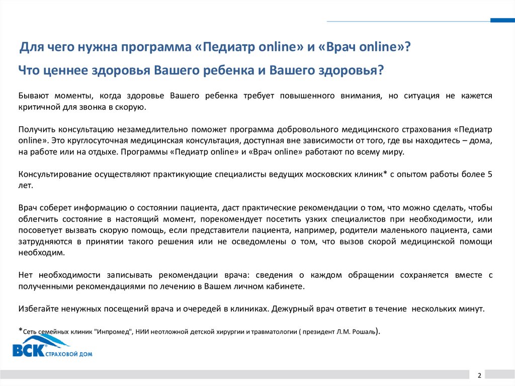 на работе или на отдыхе. Программы «Педиатр online» и «Врач online» работают по всему миру.