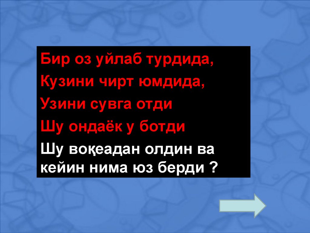 Бир оз уйлаб турдида,Кузини чирт юмдида,