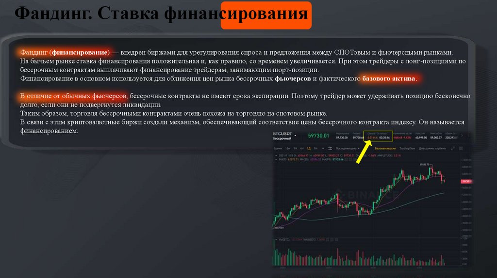 Фандинг. Ставка финансированияФандинг (финансирование) — внедрен биржами для урегулирования спроса и предложения между СПОТовым и фьючерсными рынками.