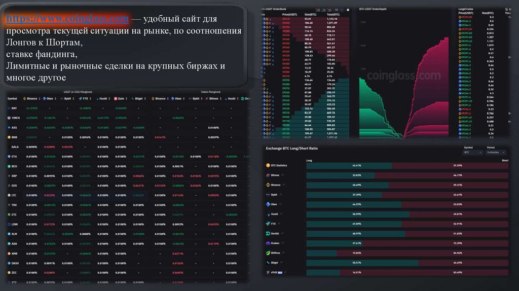 https://www.coinglass.com — удобный сайт дляпросмотра текущей ситуации на рынке, по соотношения