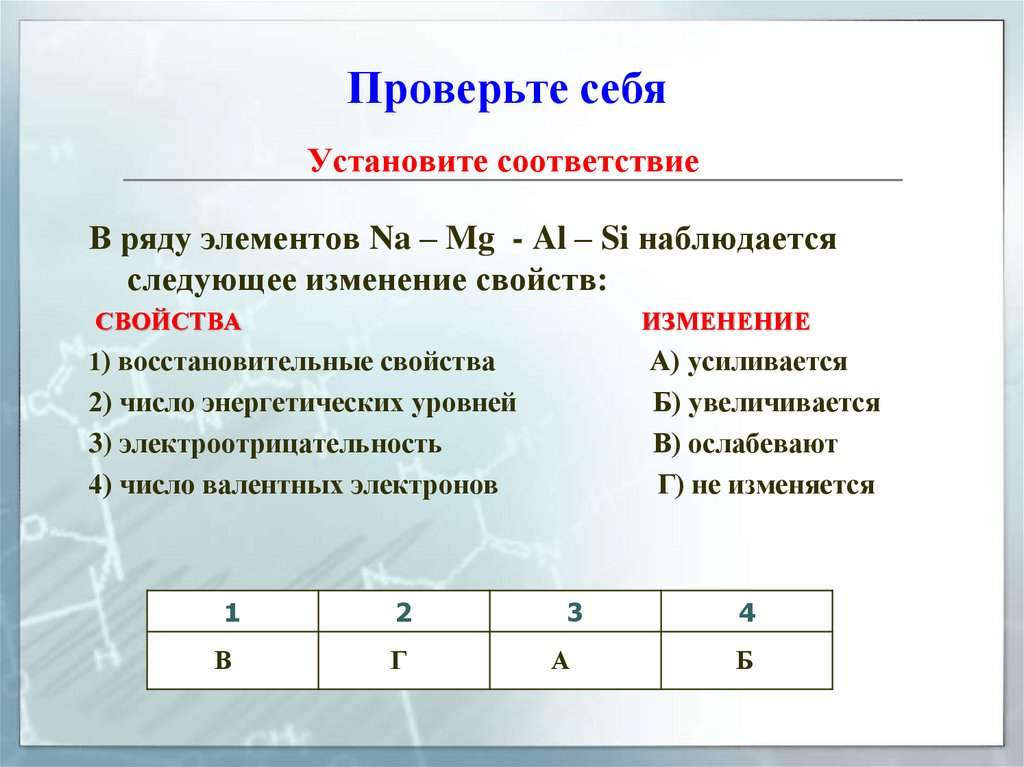 Проверь себя(работа с таблицей Д.И. Менделеева)
