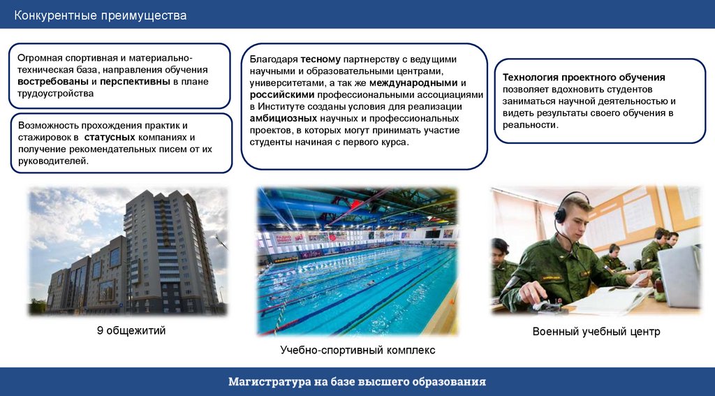 Конкурентные преимуществаОгромная спортивная и материальнотехническая база, направления обучения