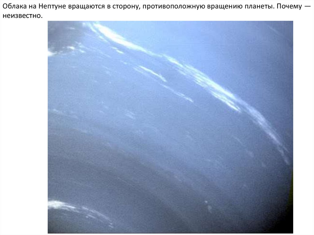 Облака на Нептуне вращаются в сторону, противоположную вращению планеты. Почему —неизвестно.
