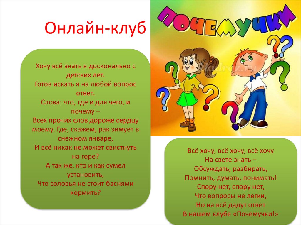 Онлайн-клуб «Почемучки»Хочу всё знать я досконально с
