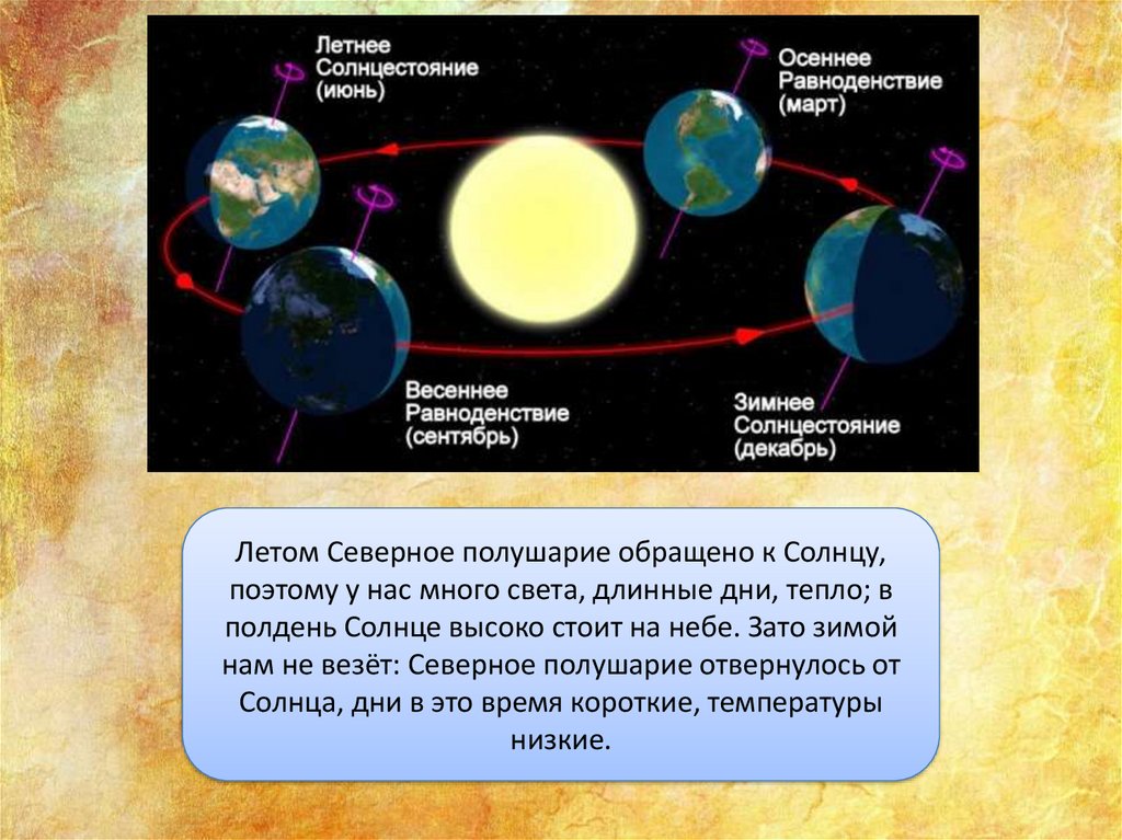 Летом Северное полушарие обращено к Солнцу,поэтому у нас много света, длинные дни, тепло; в