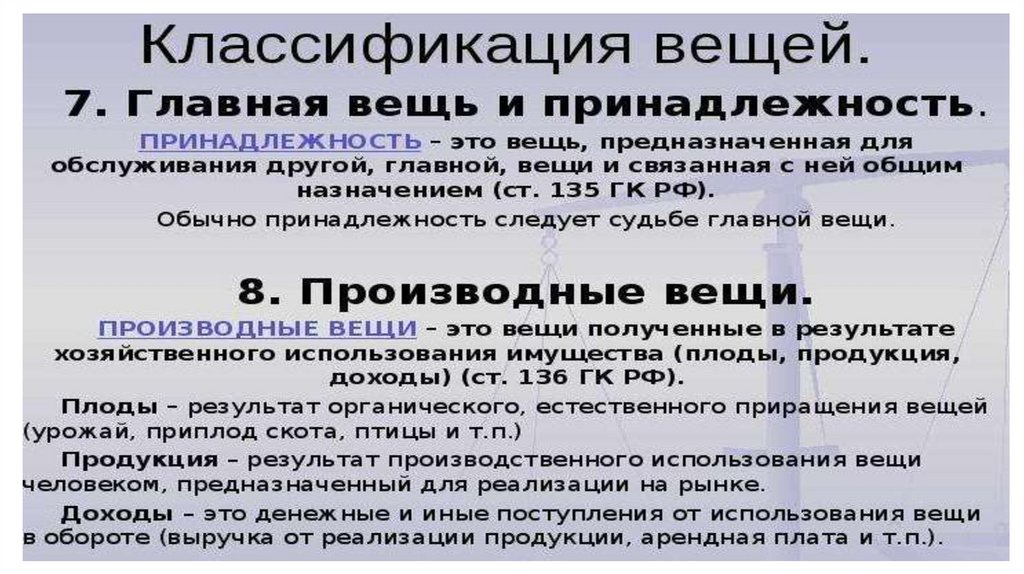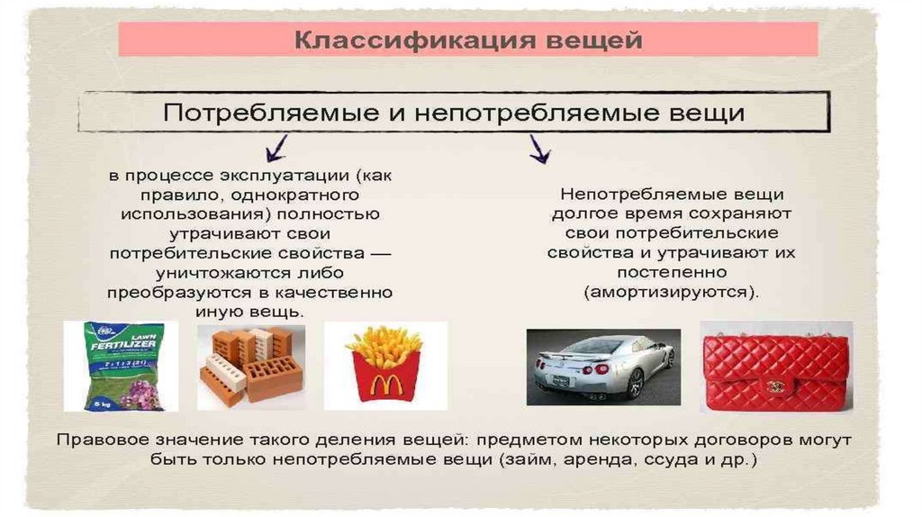 Вещи являются предметом материального мира – их можнофизически осязать. Все вещи обладают какой-либо ценностью.