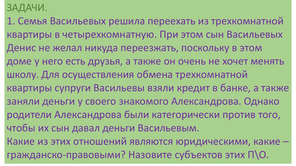 ЗАДАЧИ.1. Семья Васильевых решила переехать из трехкомнатной