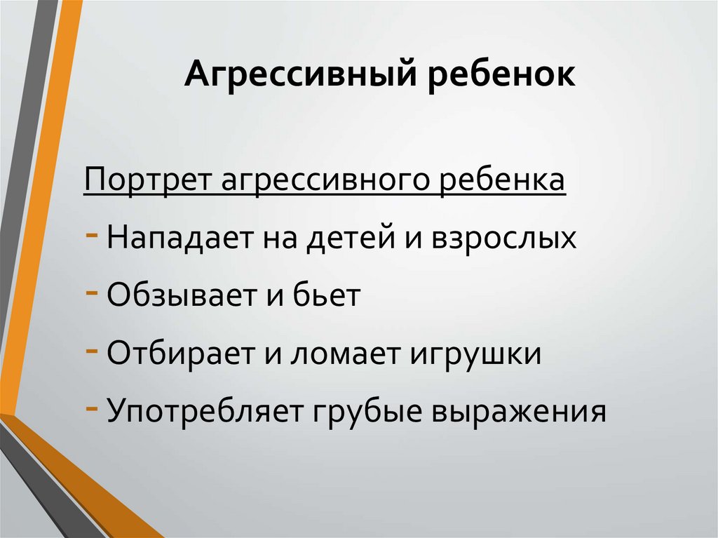 Агрессивный ребенокПортрет агрессивного ребенка