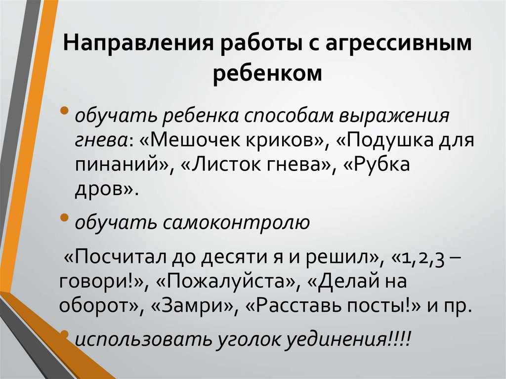 • агрессивное поведение