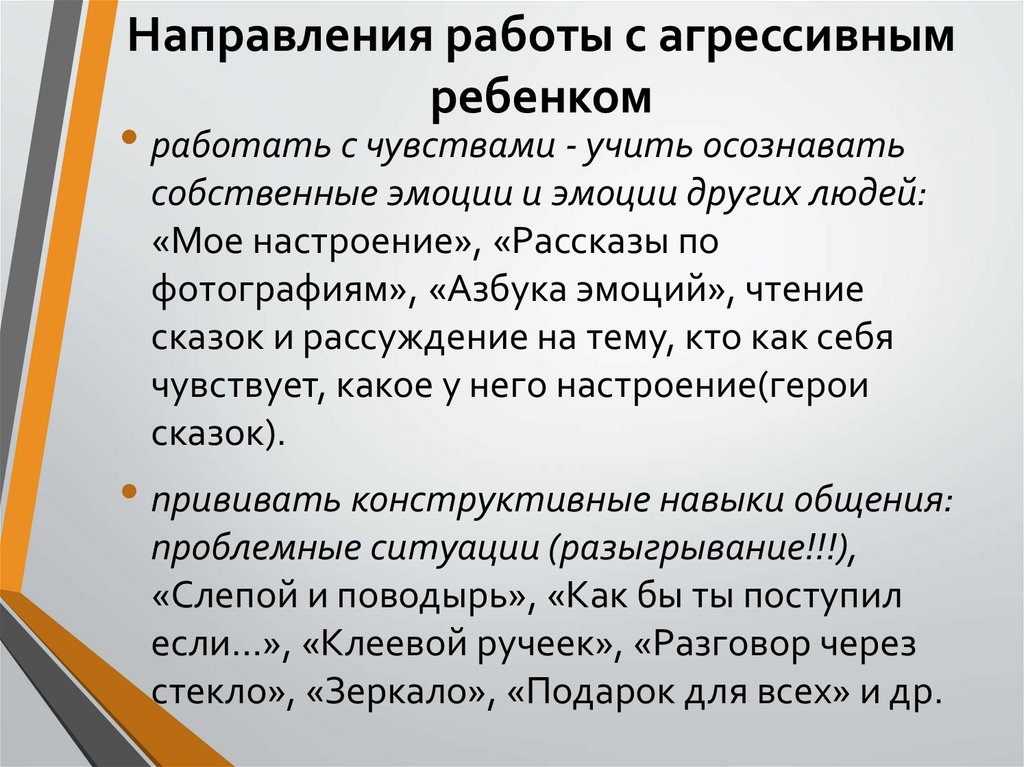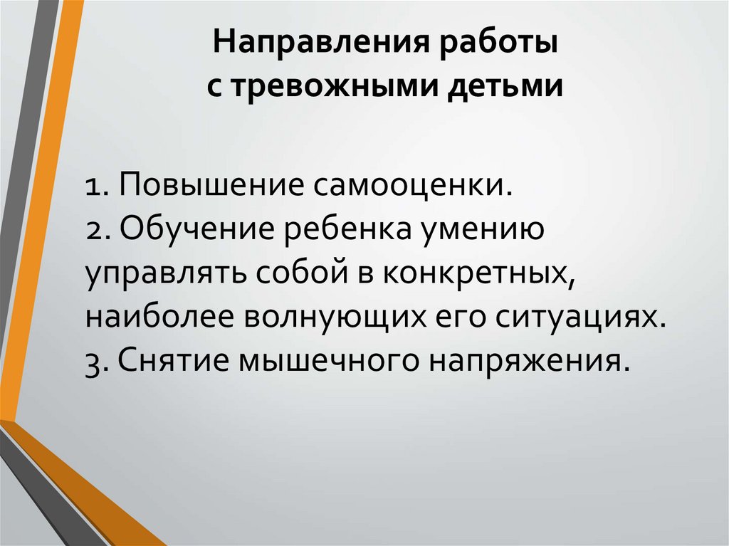 Направления работыс тревожными детьми