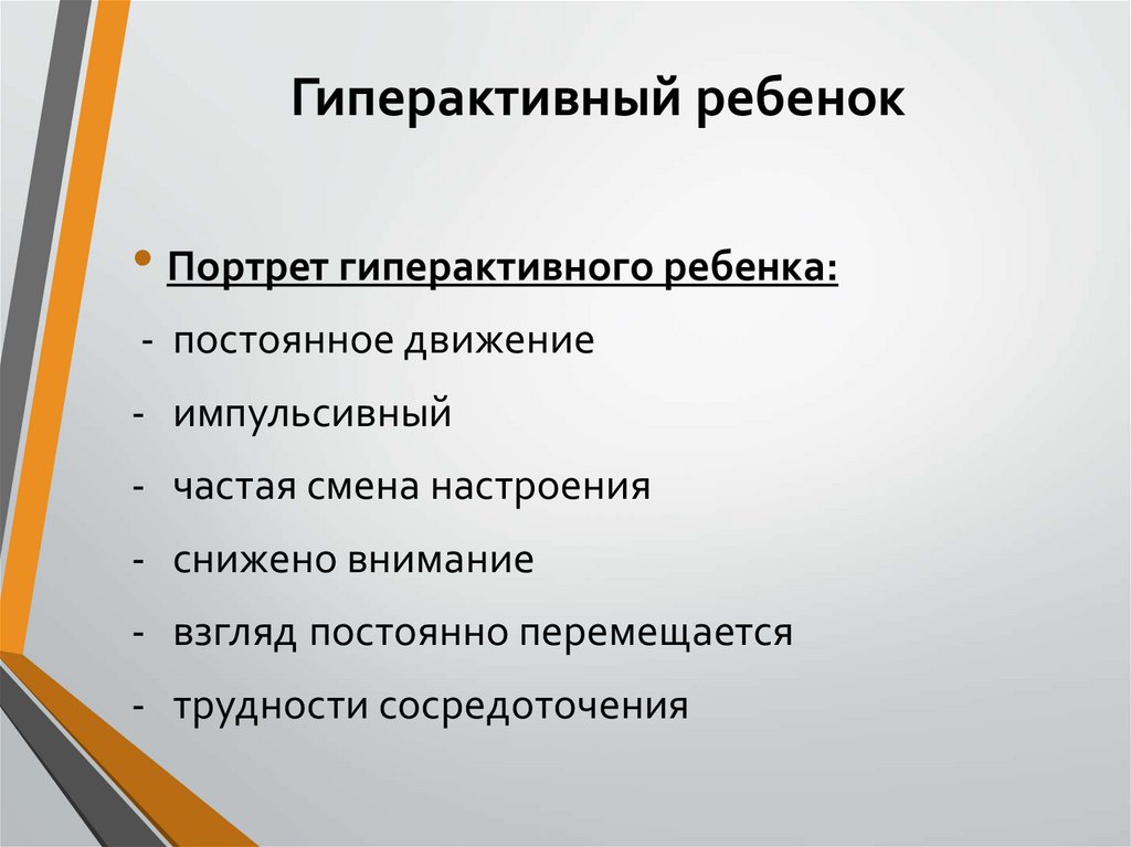 Гиперактивный ребенок• Портрет гиперактивного ребенка: