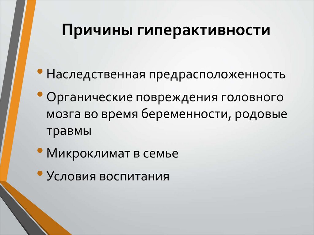 Причины гиперактивности• Наследственная предрасположенность