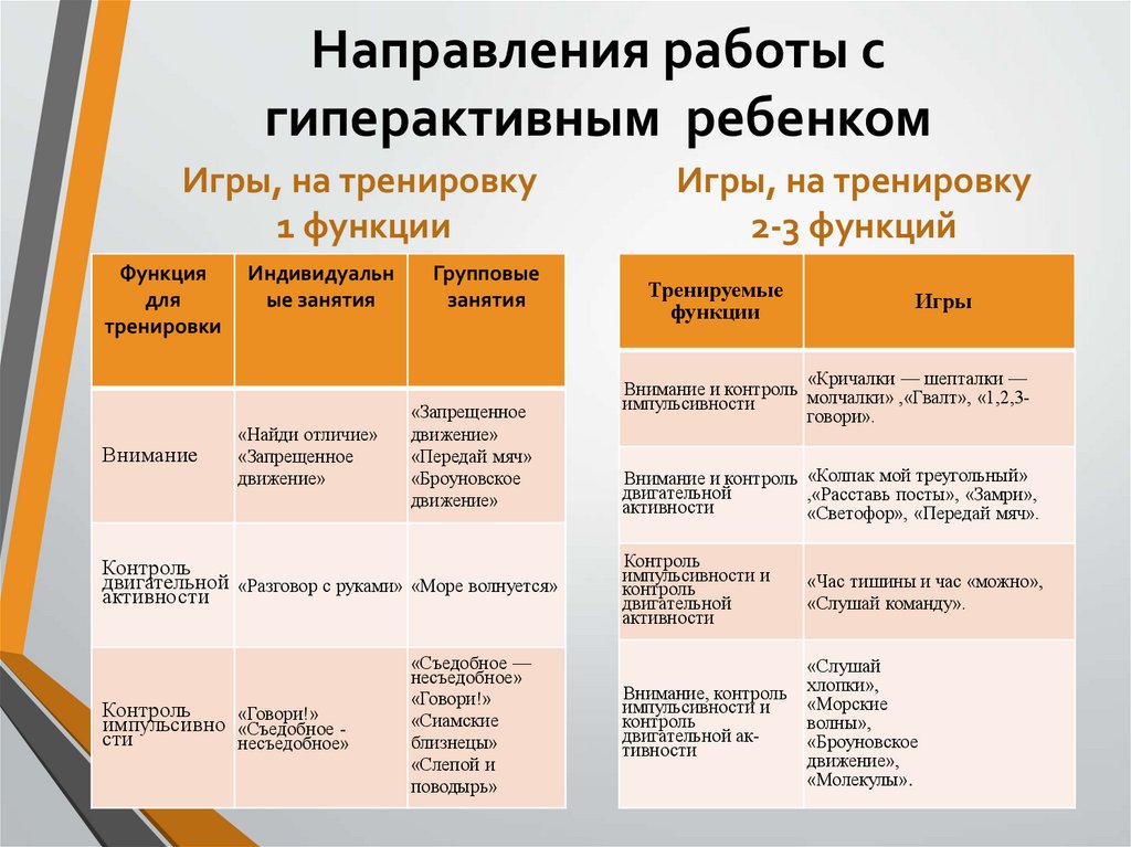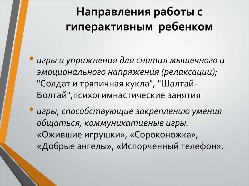 Направления работы сгиперактивным ребенком