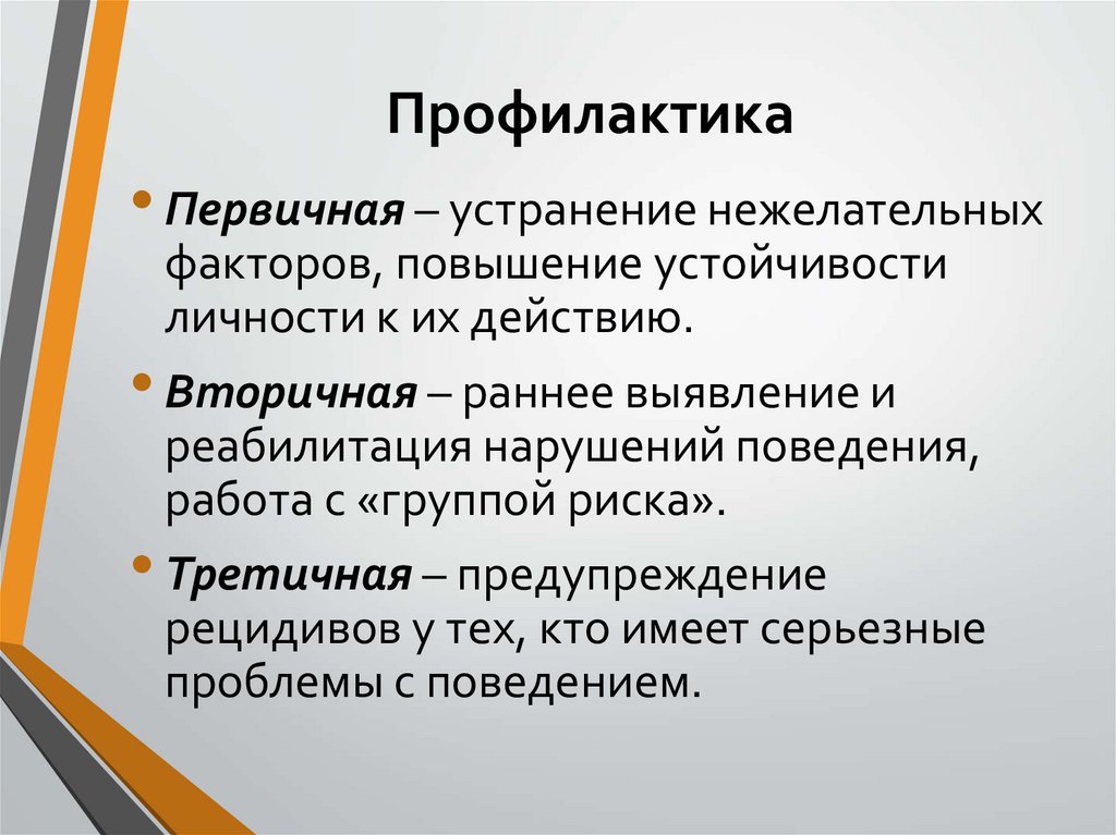 Профилактика• Первичная – устранение нежелательных