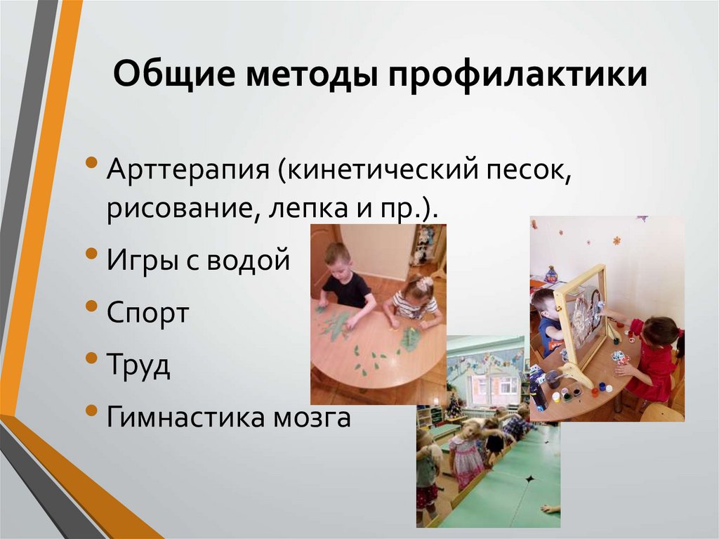 Общие методы профилактики• Арттерапия (кинетический песок,