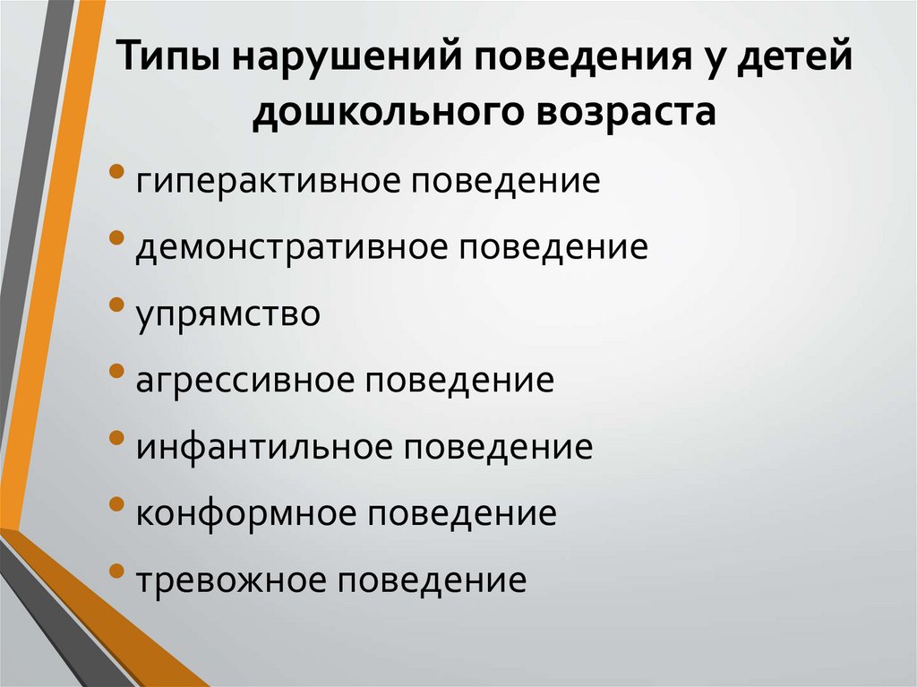 Типы нарушений поведения у детейдошкольного возраста