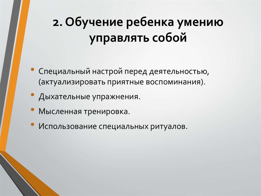 2. Обучение ребенка умениюуправлять собой