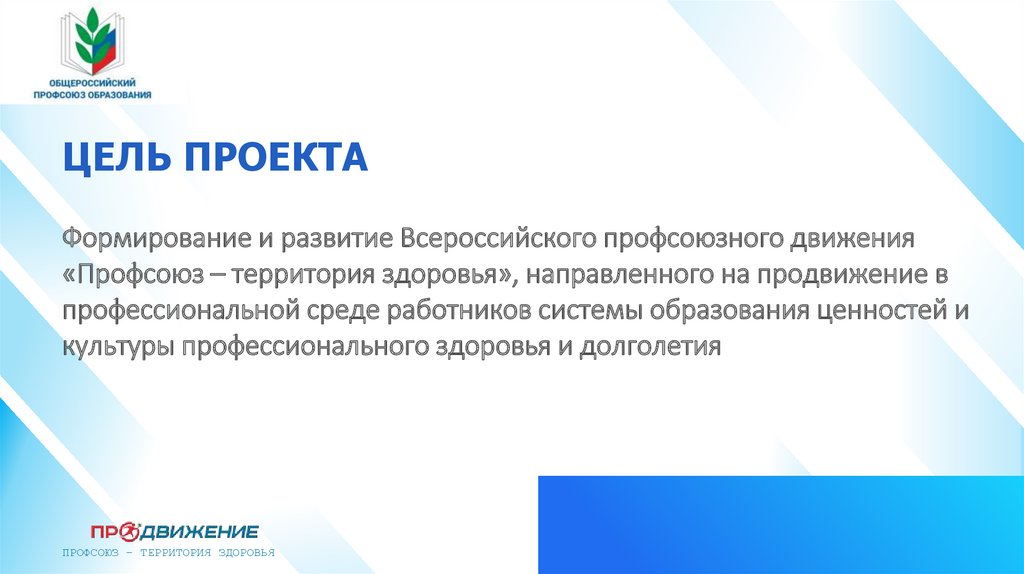 ЦЕЛЬ ПРОЕКТАФормирование и развитие Всероссийского профсоюзного движения