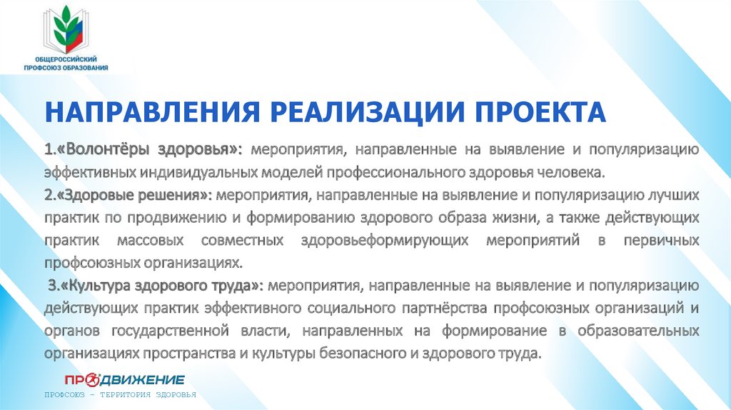 «Профсоюз – территория здоровья», направленного на продвижение в