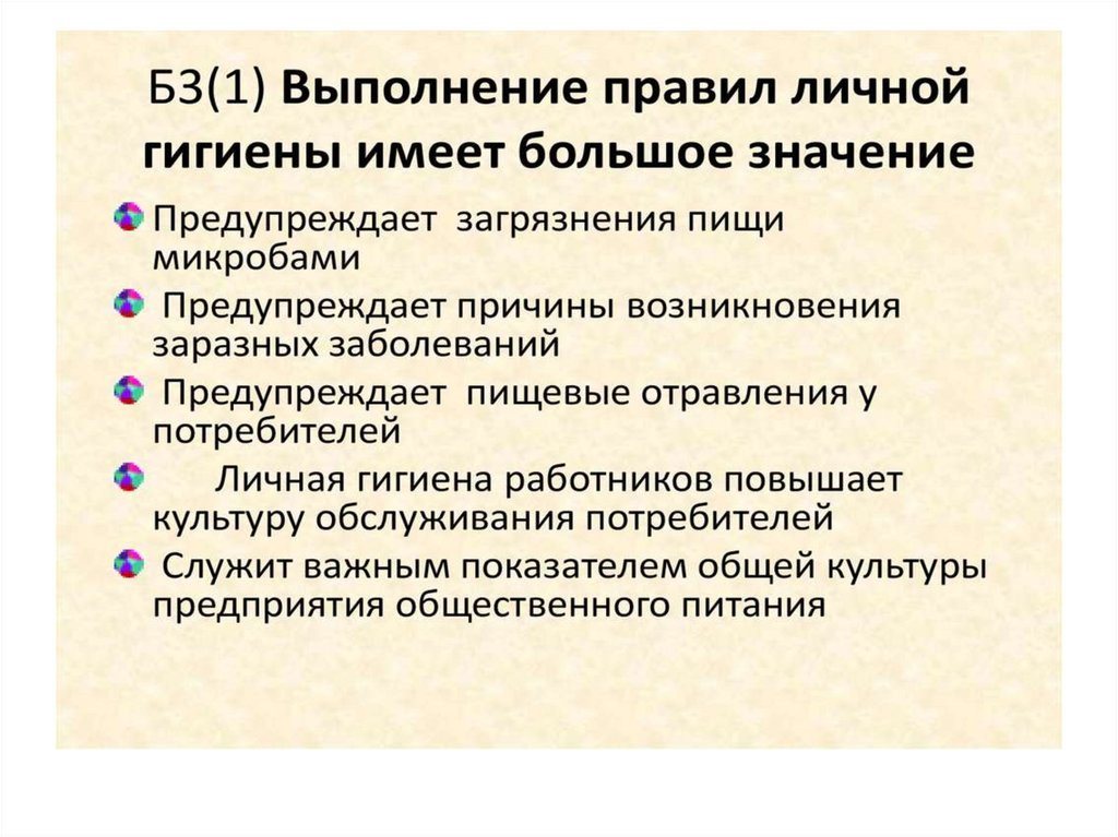 Гигиена и санитария на предприятия общественного питания. Личная гигиена