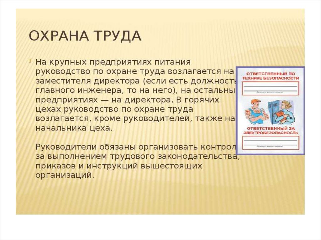 Техника безопасности и охрана труда на предприятиях общественного питания