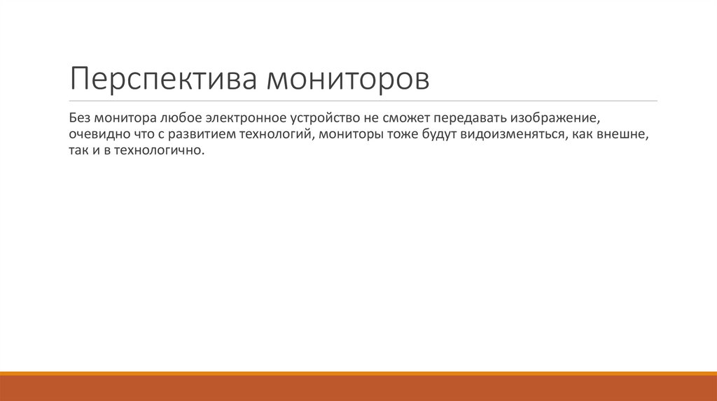 Перспектива мониторовБез монитора любое электронное устройство не сможет передавать изображение,