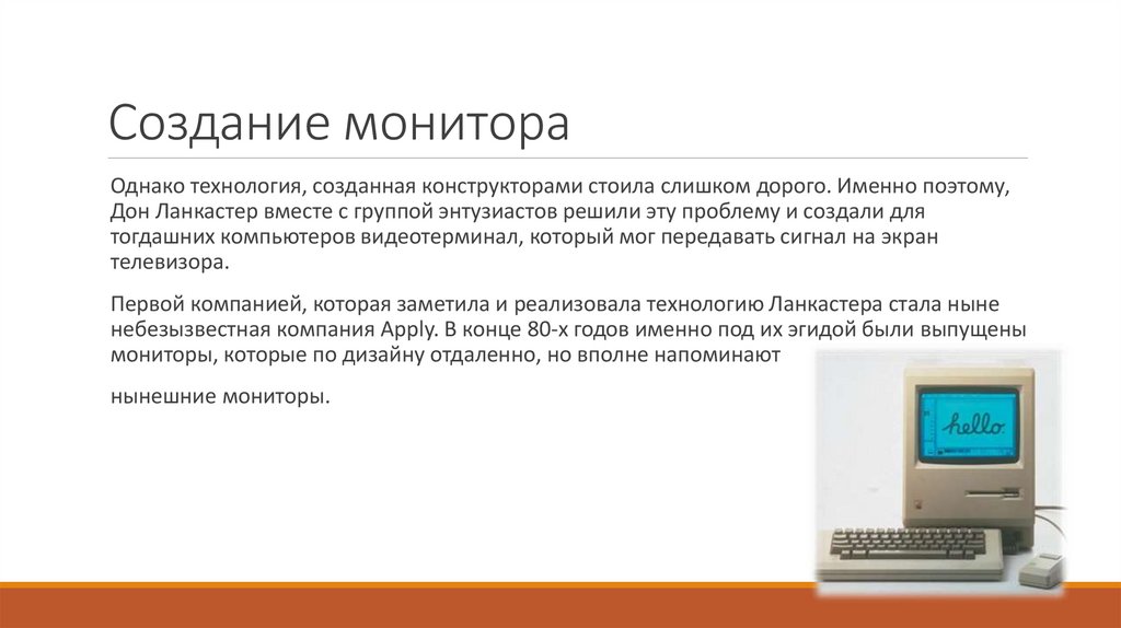 Создание монитораОднако технология, созданная конструкторами стоила слишком дорого. Именно поэтому,