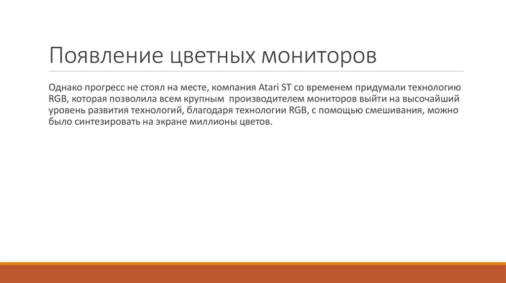 Появление цветных мониторовОднако прогресс не стоял на месте, компания Atari ST со временем придумали технологию