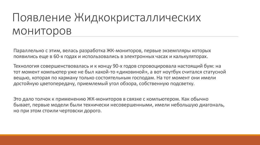 Это дало толчок к применению ЖК-мониторов в связке с компьютером. Как обычно