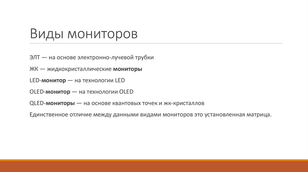 Виды мониторовЭЛТ — на основе электронно-лучевой трубки