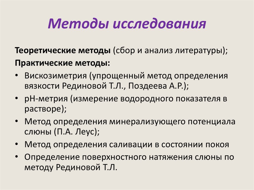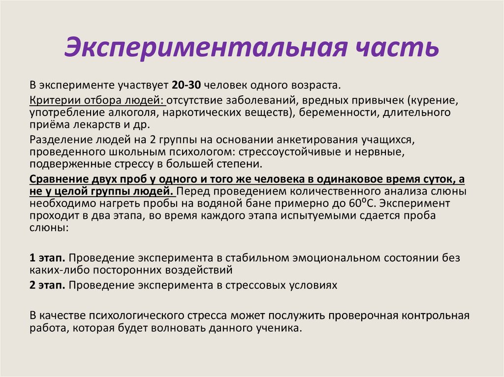 • ПРЕДМЕТ ИССЛЕДОВАНИЯ - Физикохимический состав слюны в условиях стресса