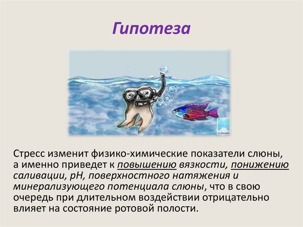 ГипотезаСтресс изменит физико-химические показатели слюны,