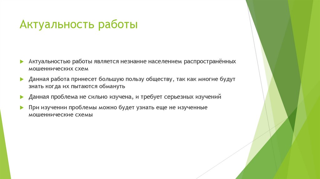 Актуальность работыАктуальностью работы является незнание населением распространённых