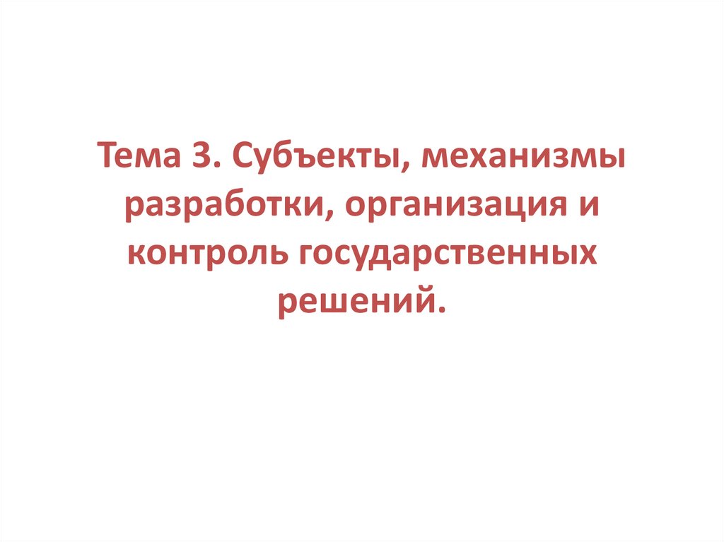 Субъекты, механизмы разработки, организация и контроль государственных решений