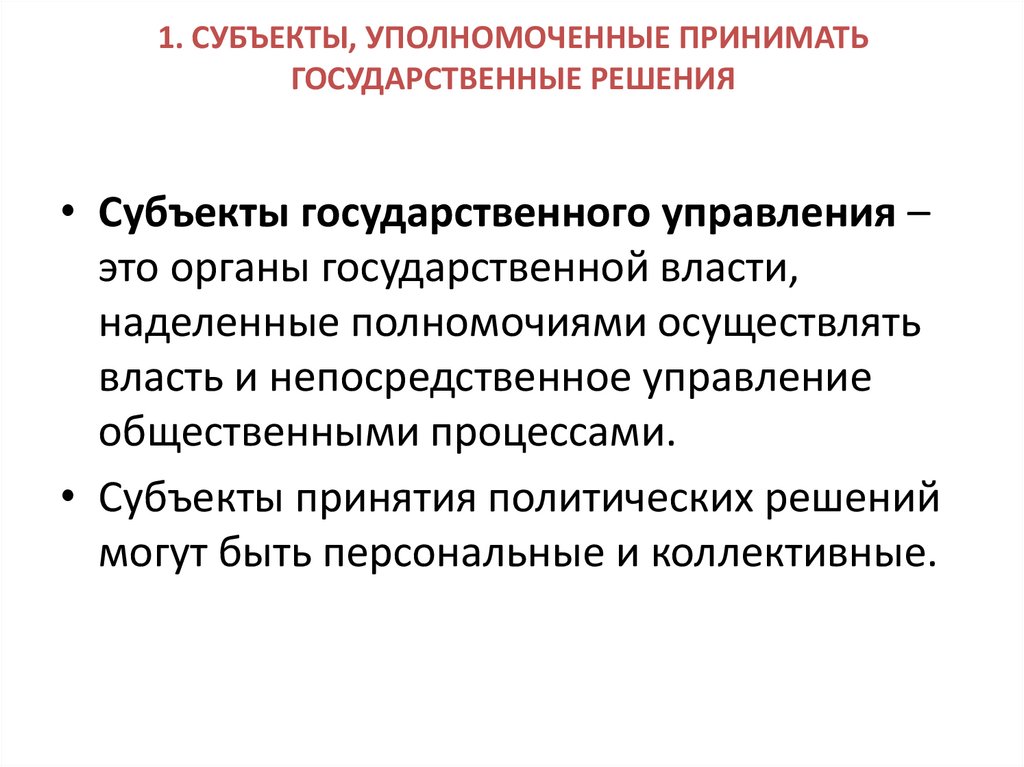 1. СУБЪЕКТЫ, УПОЛНОМОЧЕННЫЕ ПРИНИМАТЬГОСУДАРСТВЕННЫЕ РЕШЕНИЯ