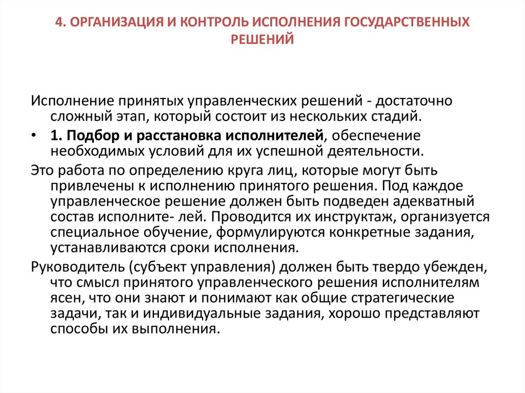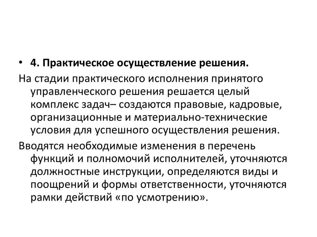 • 4. Практическое осуществление решения.На стадии практического исполнения принятого
