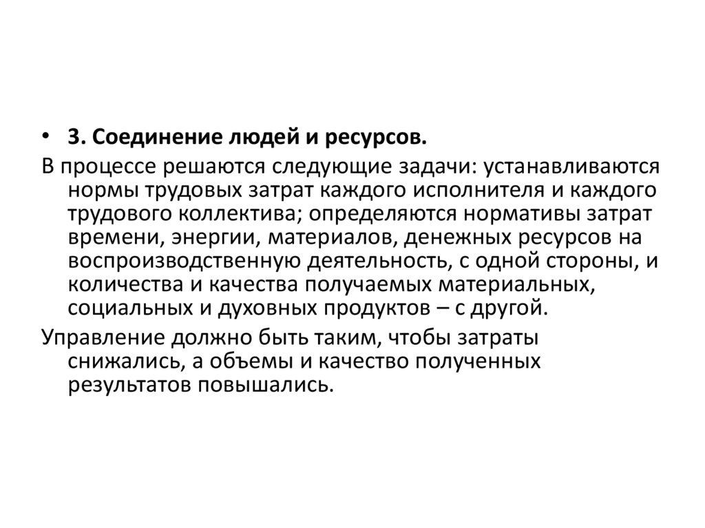 • 3. Соединение людей и ресурсов.В процессе решаются следующие задачи: устанавливаются