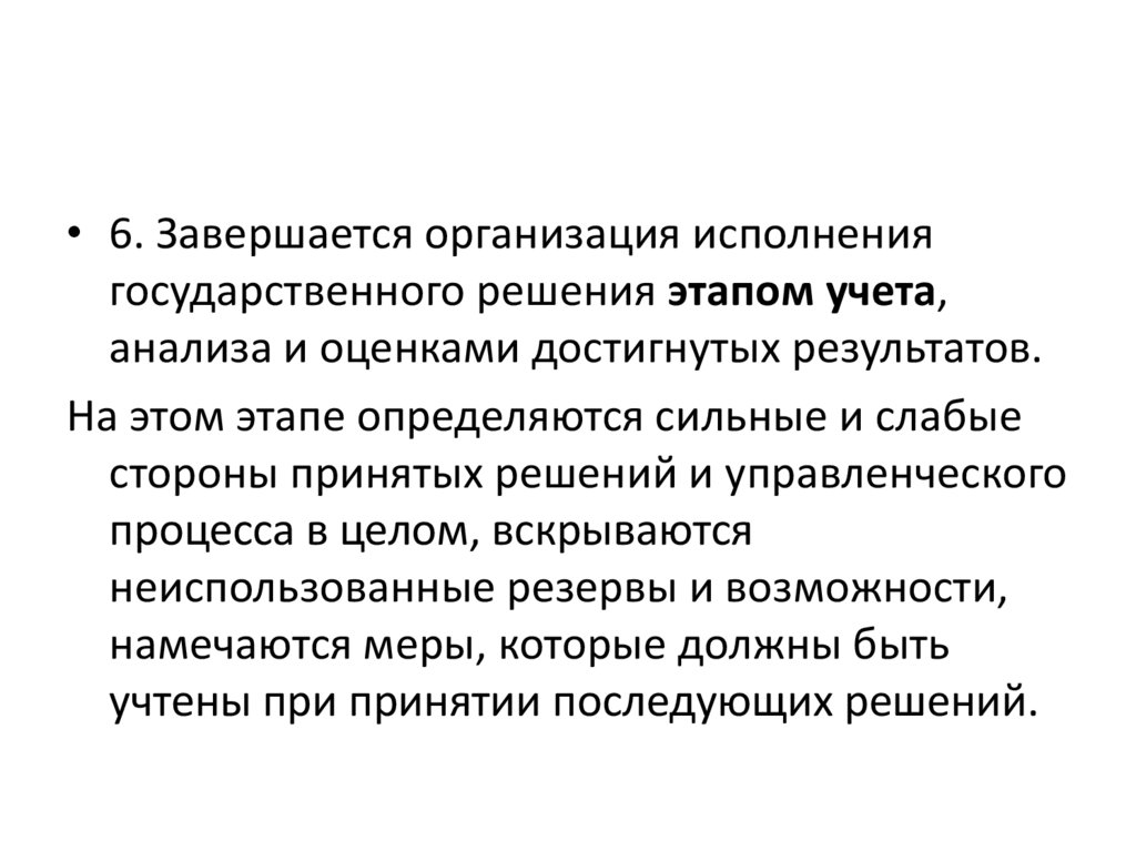 • 6. Завершается организация исполнениягосударственного решения этапом учета,
