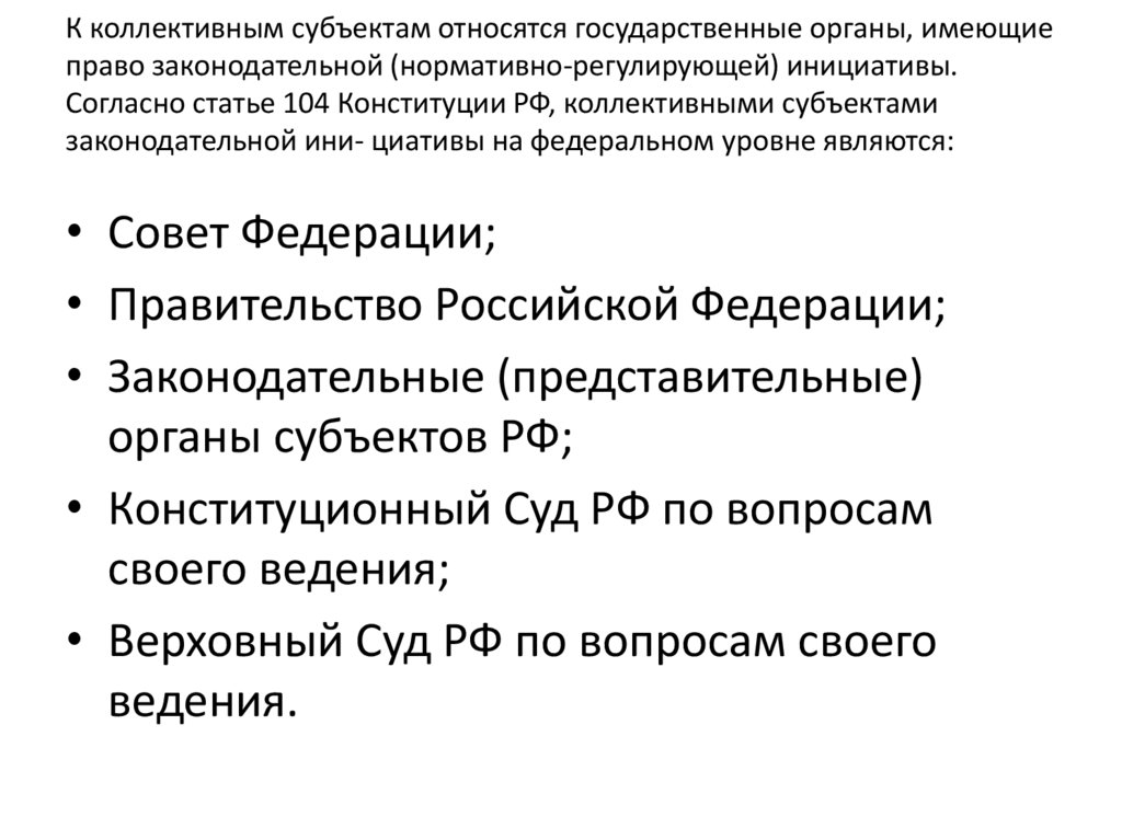 Согласно статье 104 Конституции РФ, коллективными субъектами