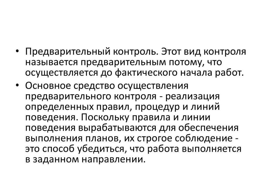 • Предварительный контроль. Этот вид контроляназывается предварительным потому, что