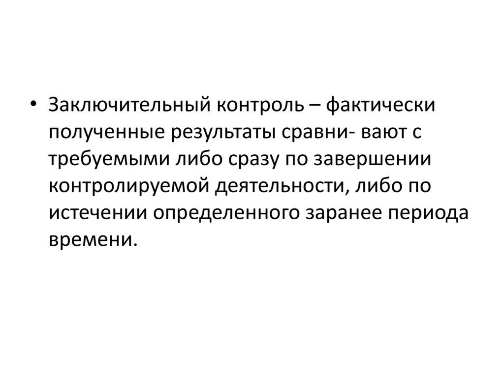 • Заключительный контроль – фактическиполученные результаты сравни- вают с
