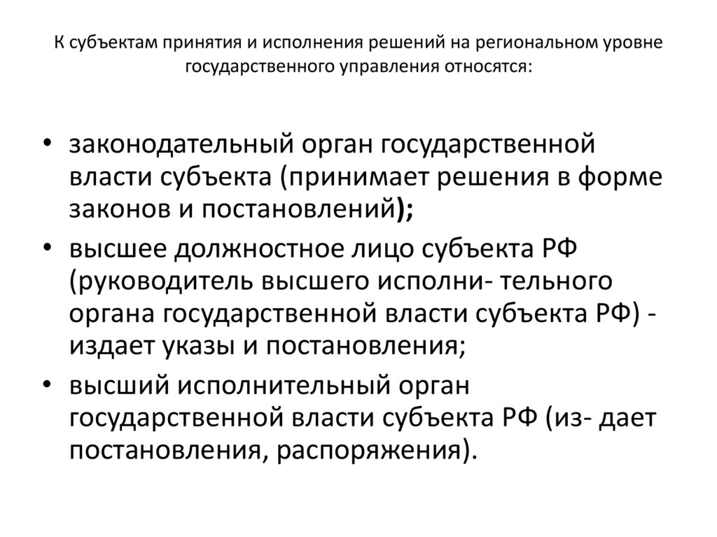 К субъектам принятия и исполнения решений на региональном уровнегосударственного управления относятся: