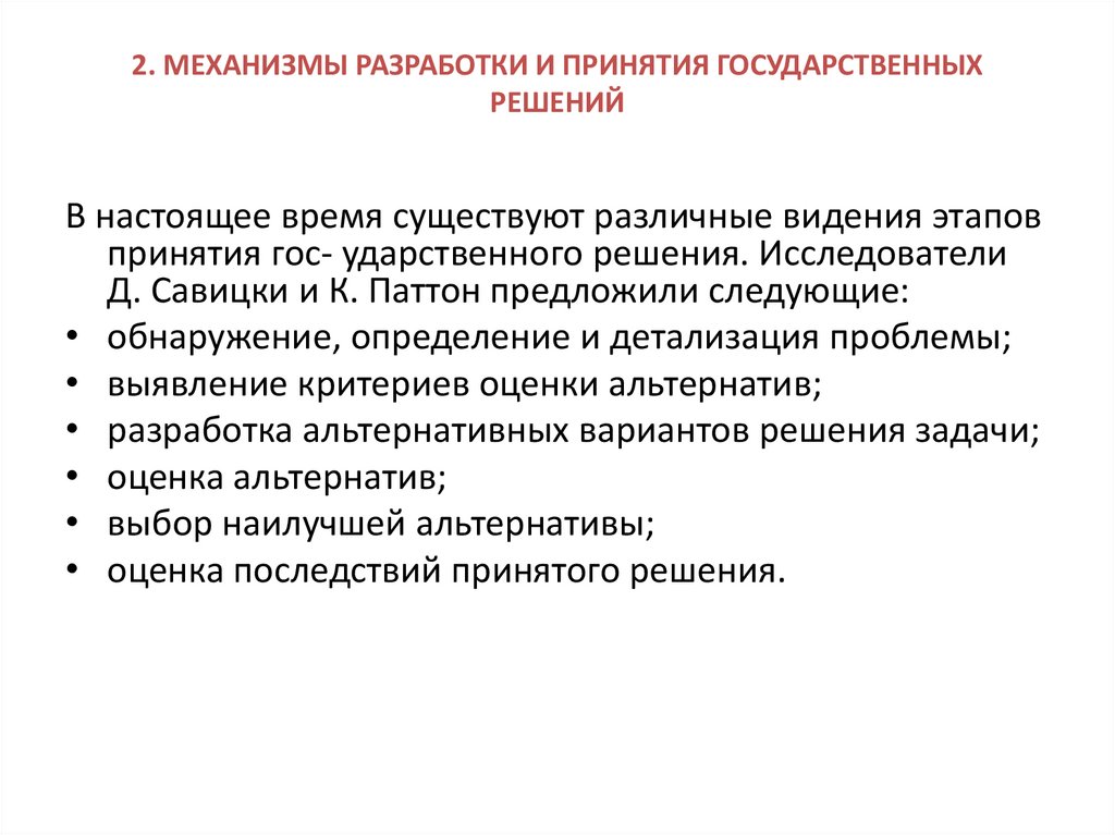 2. МЕХАНИЗМЫ РАЗРАБОТКИ И ПРИНЯТИЯ ГОСУДАРСТВЕННЫХРЕШЕНИЙ