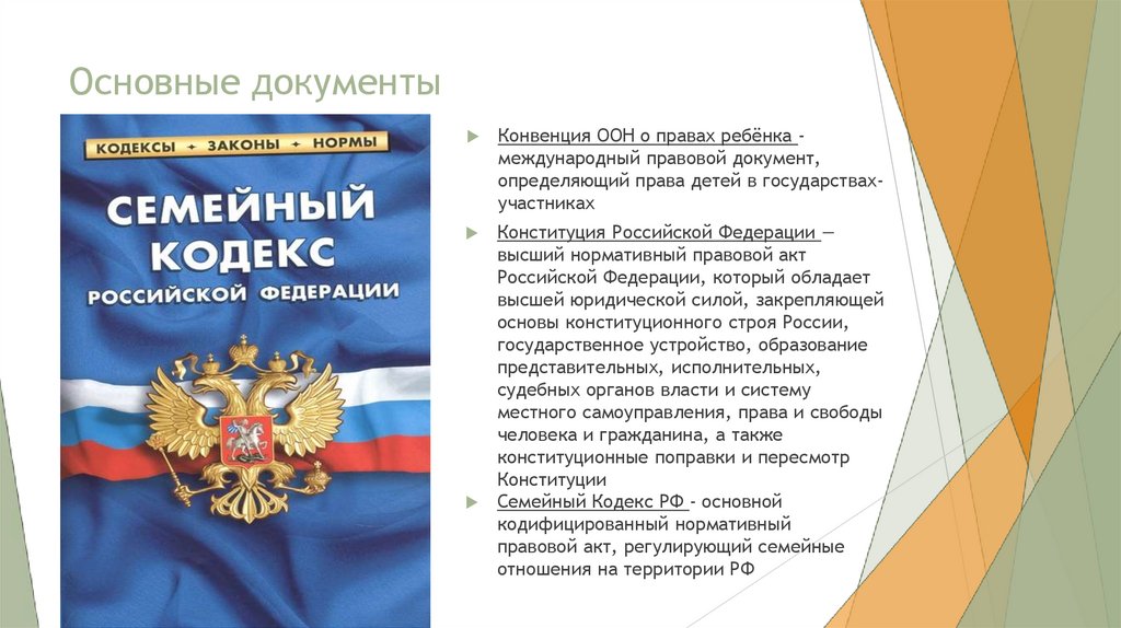 Основные документыКонвенция ООН о правах ребёнка международный правовой документ,