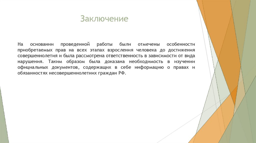 приобретаемых прав на всех этапах взросления человека до достижения