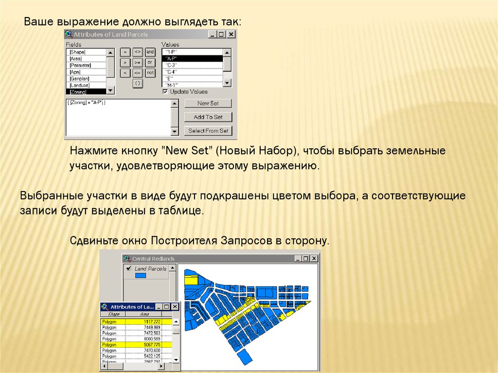 Ваше выражение должно выглядеть так:Нажмите кнопку "New Set" (Новый Набор), чтобы выбрать земельные