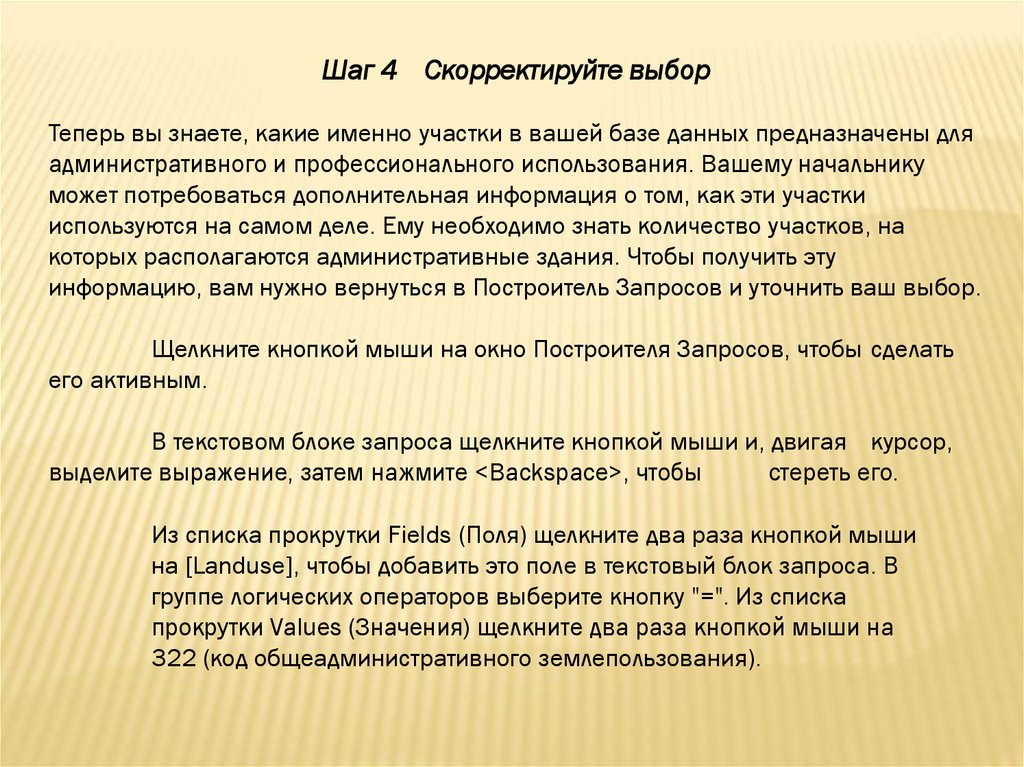 Шаг 4 Скорректируйте выборТеперь вы знаете, какие именно участки в вашей базе данных предназначены для
